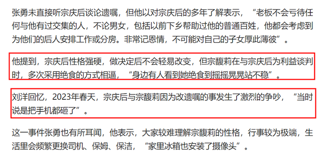 并且2023年春天,宗庆后与宗馥莉因为改遗嘱的事发生了激烈的争吵,“当时说是把手机都砸了”。