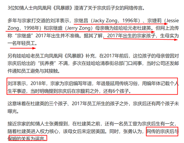 7月16日晚凤凰网《风暴眼》栏目发布了对宗庆后家族的重磅调查文章,凤凰网的记者采访了多位宗庆后身边的知情人士。