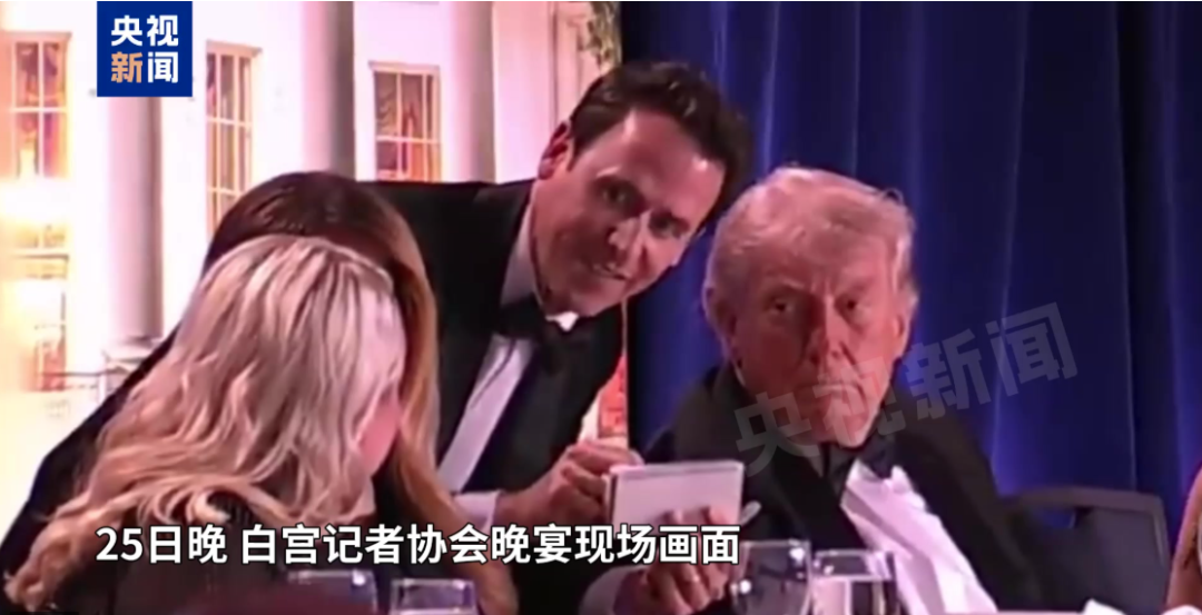 特朗普于25日晚参加白宫记者协会晚宴,宴会上发生“安全事件”。有消息称,现场传出“巨大声响”,特朗普在安保人员护送下离开。多名特工拔枪穿过过道冲向总统所在位置。